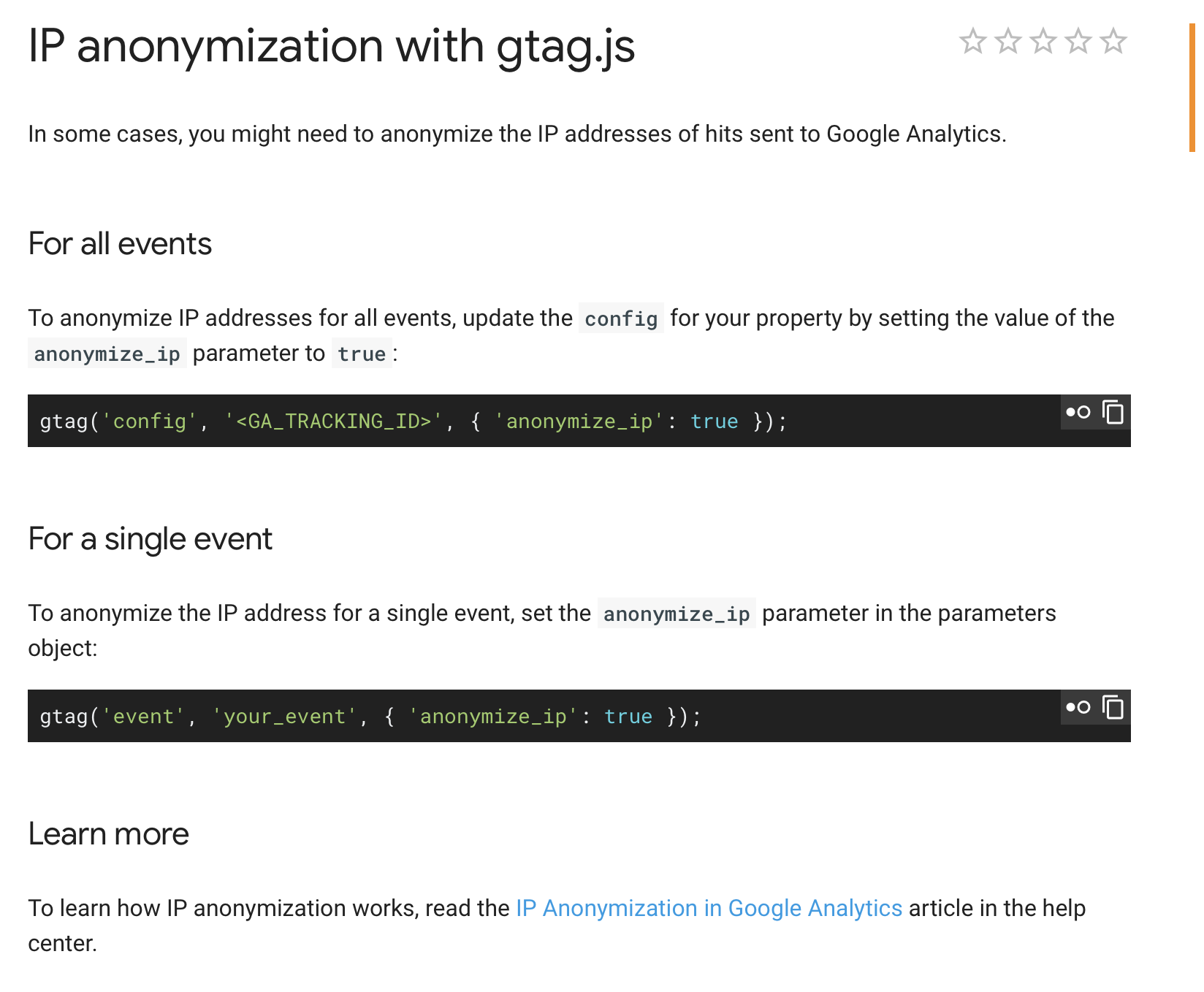 De même Google propose une documentation technique complète pour anonymiser l’adresse IP :